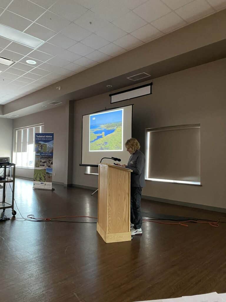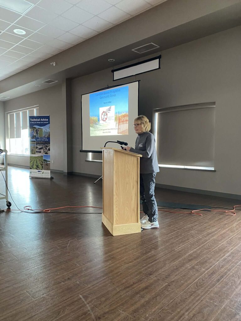 Yesterday our Committee Chair Nancy Vidler presented to the Huron County Phragmites Management Area Working Group in Clinton. She presented a short history of our group’s work in Lambton Shores, with a focus on our largest and most challenging project along the shoreline. The project, referred to as ‘Wood Drive’, is by far our largest project to date. This coastal wetland is located along the Lake Huron shoreline within the Municipality of Lambton Shores and covers ~59 ha (146 ac). The wetland complex has Provincially Significant and Globally Rare designations and includes the only meadowmarsh community on Lake Huron within the Carolinian Zone. The meadow marsh, emergent marsh and shallow open water communities throughout this wetland provide critical habitat for a number of species at risk including turtles, snakes, birds and plants. Working with our partners over many years and tackling areas as appropriate tools, money and resources became available we are finally seeing the end of this huge undertaking! Learn more here